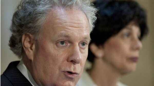 Quebec Premier Jean Charest explains the reasons for leaving a negotiation table with student leaders as Education Minister Michelle Courchesne, right, looks away at a news conference at the Premier's office at the legislature in Quebec City on Thursday, May 31, 2012.Jacques Boissinot/The Canadian Press