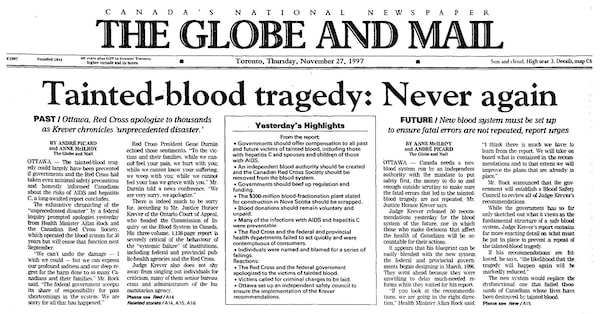 Canada needs a new blood system run by an independent authority with the mandate to put safety first, the money to do so and enough outside scrutiny to make sure the fatal errors that led to the tainted-blood tragedy are not repeated, Mr. Justice Horace Krever says.