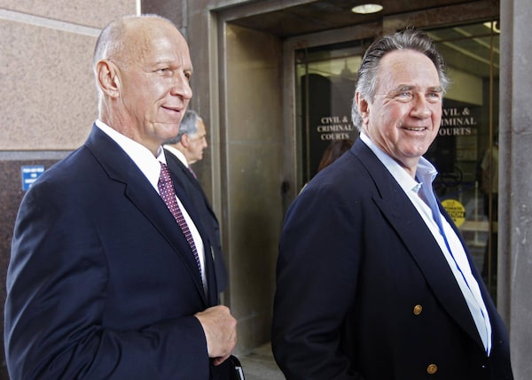 Harold Peerenboom (R) and security consultant Steve Reesor (L) arrive in Palm Beach County Court in downtown West Palm Beach April 13, 2016, in response to litigation involving Isaac Perlmutter, the enigmatic billionaire chief executive of the Marvel Entertainment unit of the Walt Disney Company and a dispute over a local tennis professional.ANDREW INNERARITY/The Globe and Mail