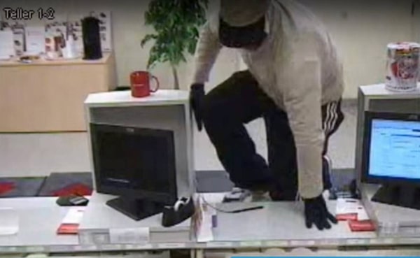 A screengrab from surveillance footage shows the Vaulter robbing a Calgary Scotiabank branch in 2011.Photo courtesy of York Regional Police