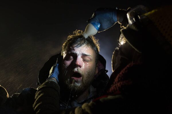 NEWS PHOTO: Amber Bracken earned a nomination for her photograph of a man having milk of magnesia poured over his eyes after being pepper sprayed.