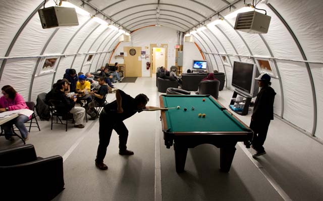 T he twins make it to Ottawa. But complications in the North don’t always turn out well. The housing shortage across the Arctic is dire: Iqaluit has been described as a town with 8,000 people, 10,000 jobs, and 5,000 houses. Keith Peterson, the recently re-elected Finance Minister of the Nunavut government (he’s also responsible for the liquor commission), tells me one morning that Nunavut is currently short 3,500 houses. They cost $450,000 each to build – on steel stilts, to anchor them in the permafrost, which in turn makes them susceptible to drunks who crawl underneath and light a fire to warm up. Mr. Peterson says it will take up to 10 years to build them.
