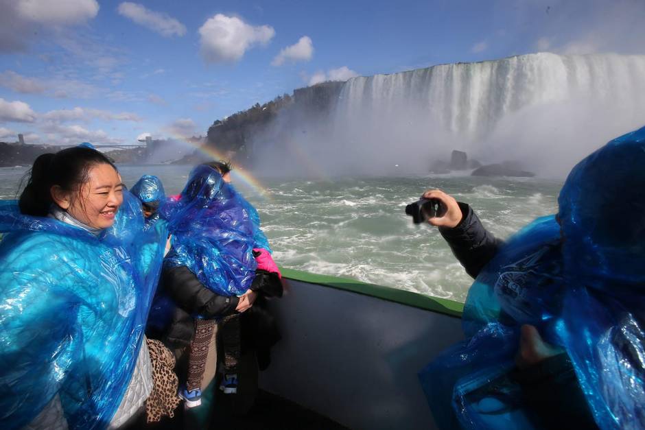 There is no disappointment, however, on this recent day, with the sun painting rainbows in the mist over the Canadian-side Horseshoe Falls. Hundreds of viewers line the walkway that runs alongside. Buses discharge tourists who have flown to Canada from China, mostly young couples with selfie sticks to capture themselves in various romantic poses with the falls as backdrop.