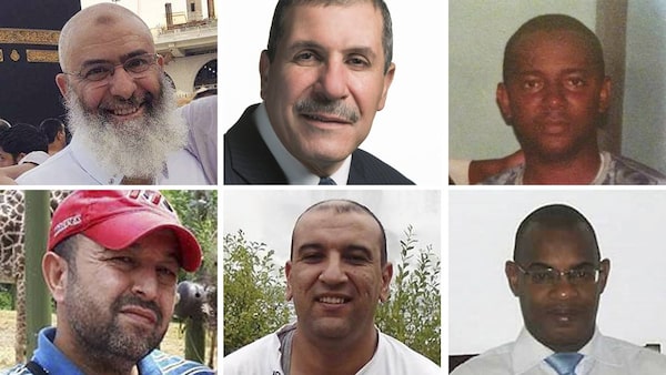 The victims of the Quebec City mosque shooting. Clockwise from top left: Azzeddine Soufiane, 57; Khaled Belkacemi, 60; Ibrahima Barry, 39; Mamadou Tanou Barry, 42; Abdelkrim Hassane, 41; and Boubaker Thabti, 44.handouts, Moussa Sangare