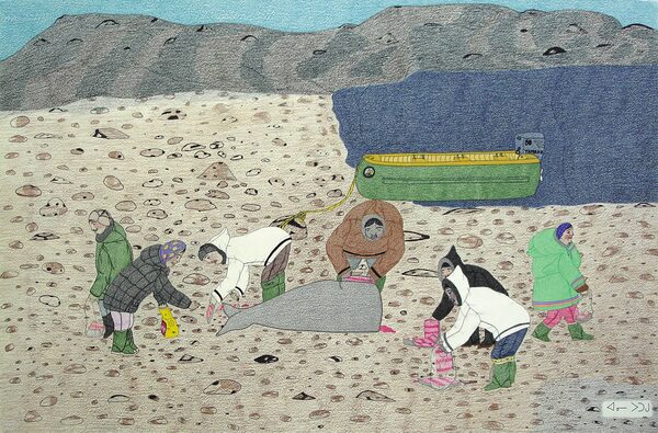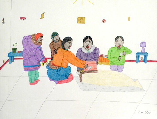 Title: Family Gathering Whale MeatAnnie Pootoogook