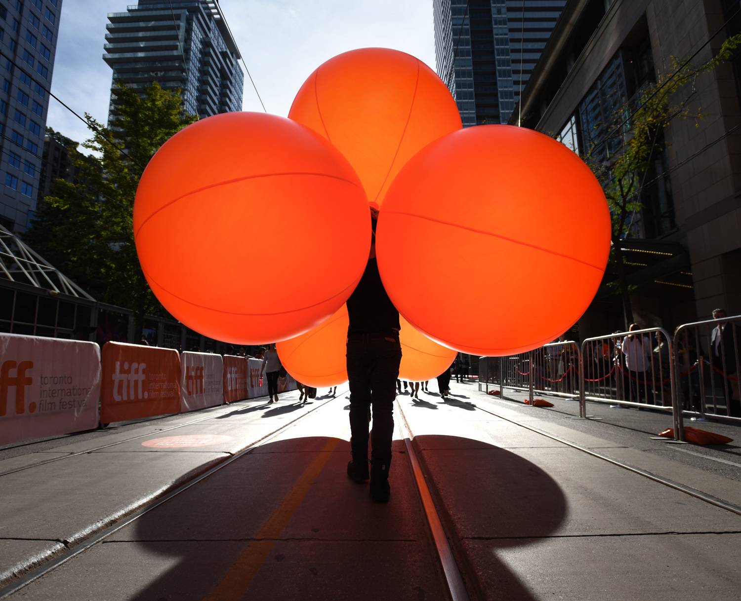 September 10: Scott Patrick carries balloons down King St. West during the Toronto International Film Festival.