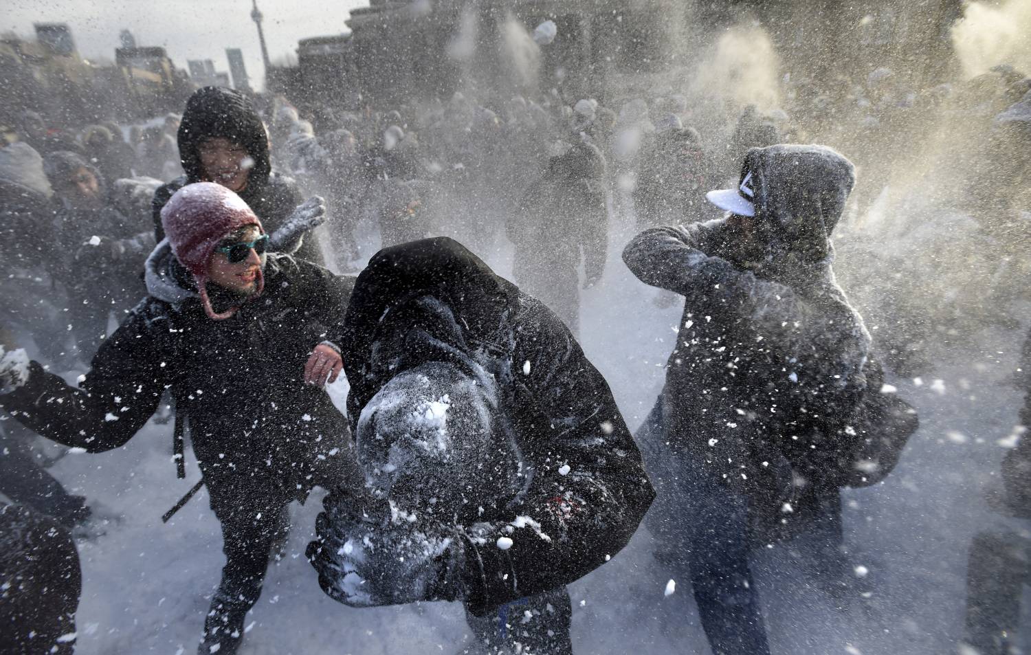 February 3: University of Toronto students take part in the annual U of T campus wide snowball fight.