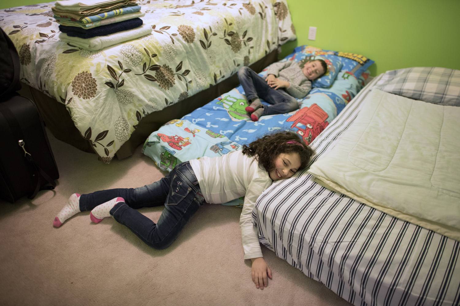 December 11: Originally from Damascus, Syria, Esther Agigian and her brother Norair relax in the bedroom of their new home in Cambridge, Ontario.