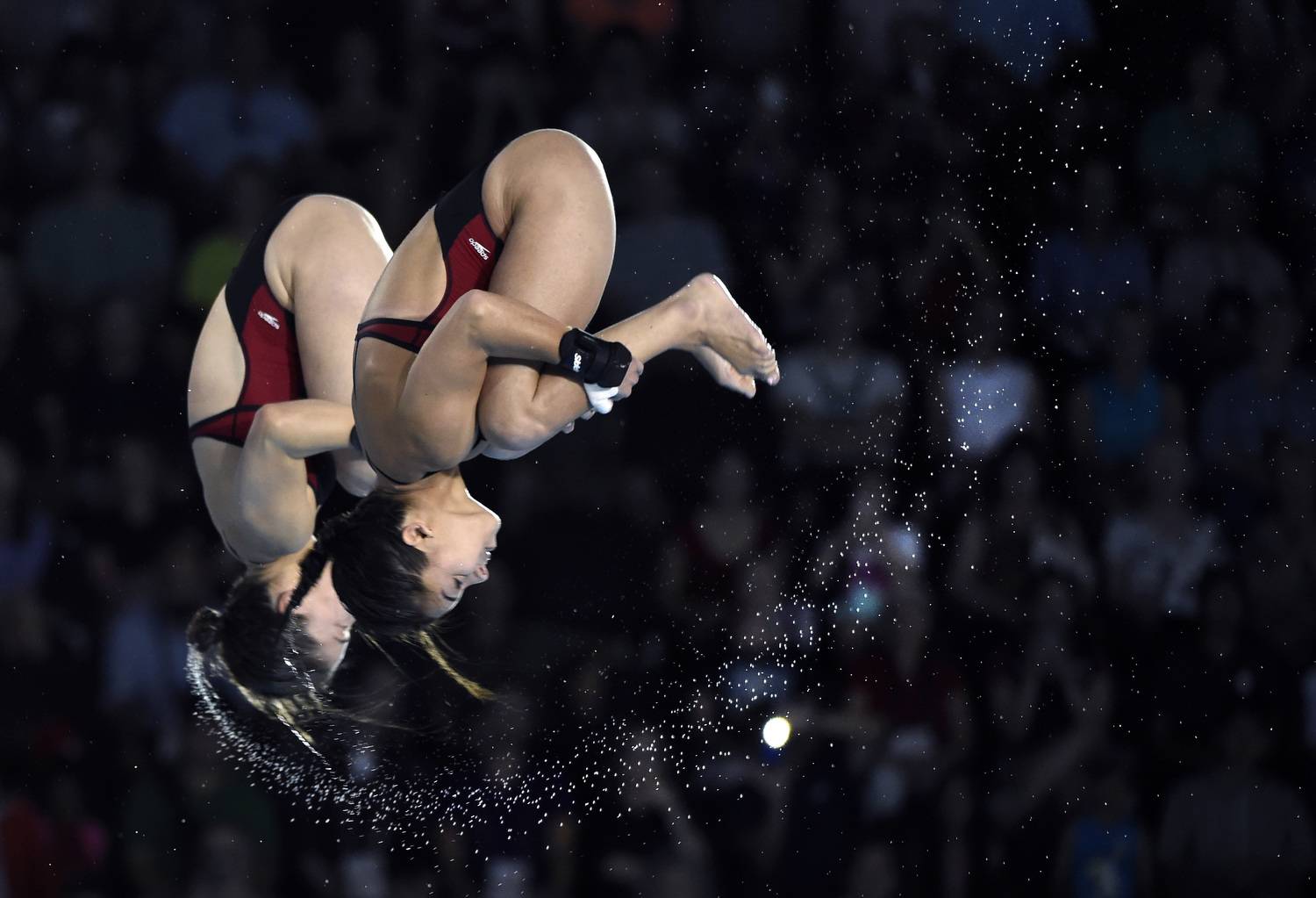 July 13: Meaghan Benfeito and Roseline Filion on their way to a gold medal in the 10m platform diving finals at the Toronto 2015 Pan Am Games.