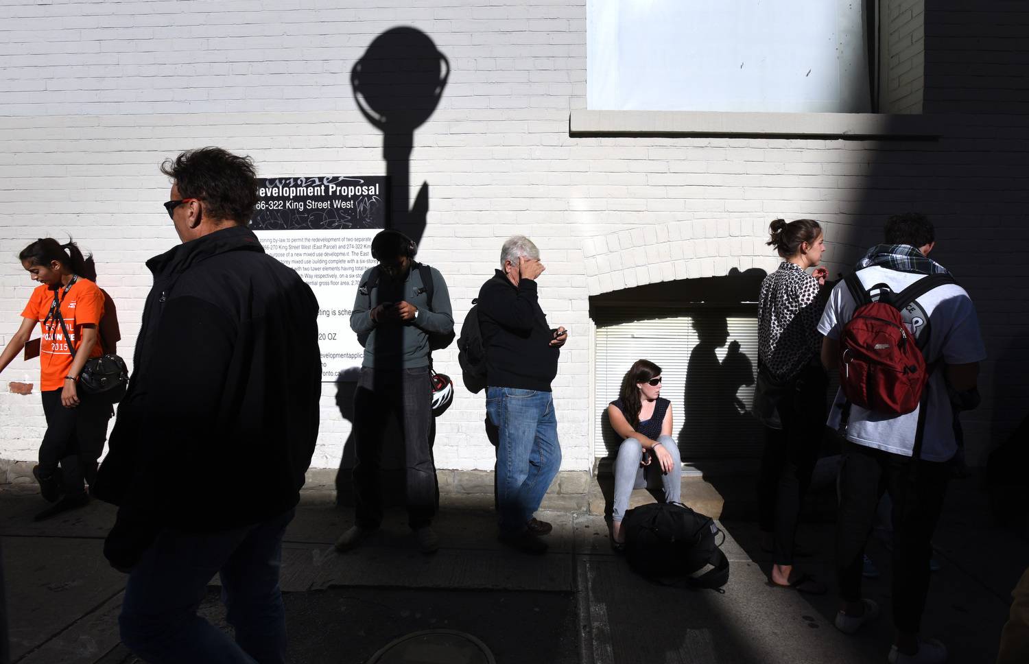 September 14: Fans lineup for rush tickets for the film Spotlight that is being screened at the Princess of Wales Theatre during the Toronto International Film Festival.