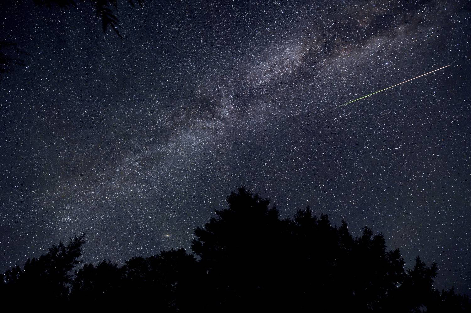 August 12: A meteor streaks past the Milky Way during the annual Perseid Meteor shower.