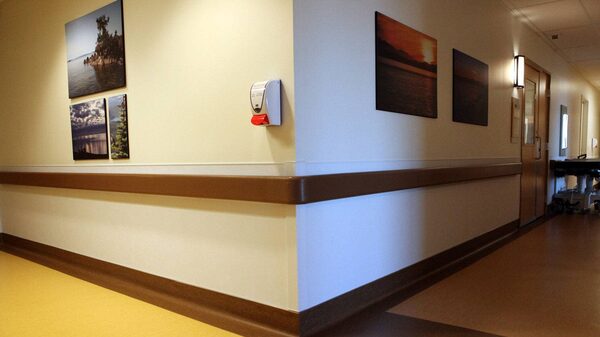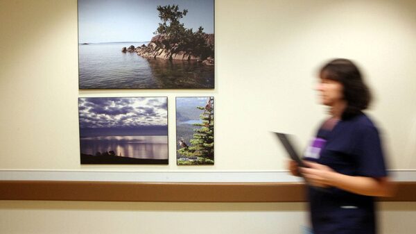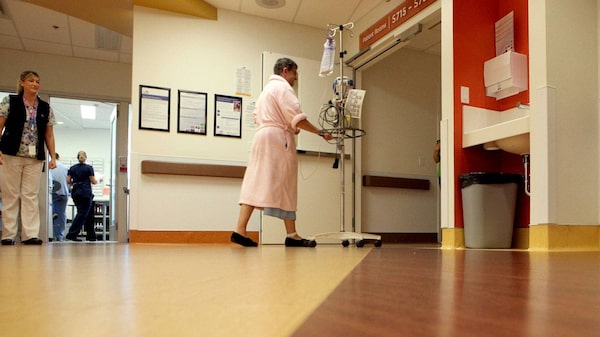 A nurse at the Royal Jubilee Hospital walks by art work, earth tone colours and new elderly friendly hand railings inside the Patient Care Centre in Victoria, B.C.Chad Hipolito for The Globe And Mail