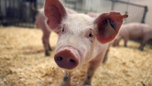 The small herd of pigs in a research barn in Guelph look like ordinary pigs.