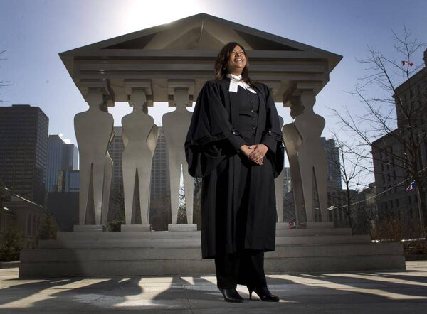 Sharon Jeethan, a lawyer at the Toronto firm of Derstine Penman LLP, stands in front of the “Pillars of Justice” in Toronto on Feb. 6, 2013. Ms. Jeethan says she has grown used to hearing her profession derided whenever lawyers are mentioned at social events.PETER POWER/The Globe and Mail