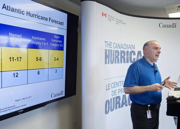 Bob Robichaud, a meteorologist at the Halifax-based centre, said figures released by the U.S. National Oceanic and Atmospheric Administration predicted 11 to 17 named storms, with five to nine expected to become hurricanes and two to four expected to become major in force.