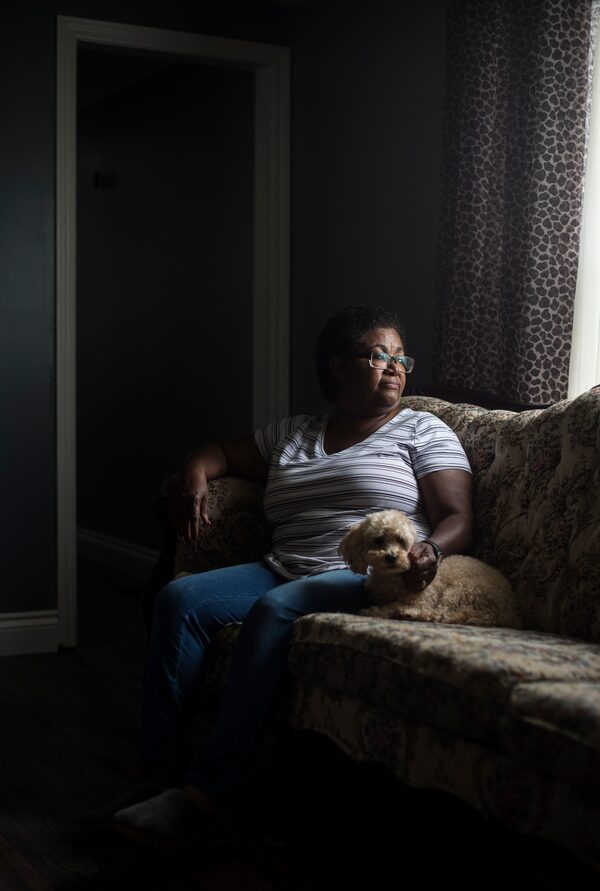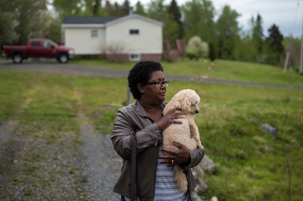 Shanna Desmond’s mother, Thelma Borden, holds Penny G, her granddaughter Aaliyah’s dog, outside her home where the killings took place.Darren Calabrese/The Globe and Mail
