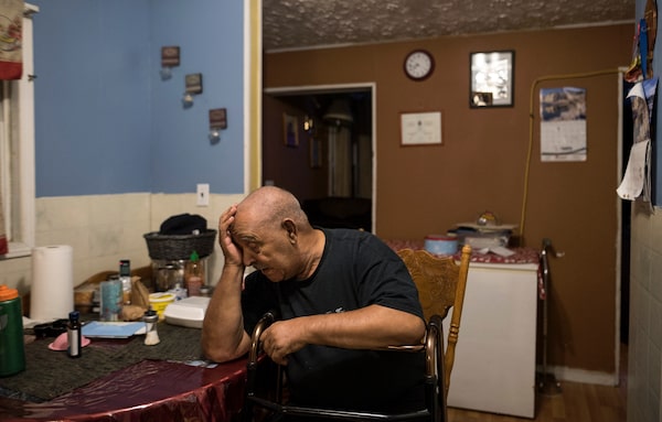 Wilfred Desmond, Lionel Desmond’s grandfather, composes himself in the family home in Lincolnville, N.S. Framed on the wall behind him is Lionel Desmond’s Canadian Oath of Allegiance for military service.Darren Calabrese/The Globe and Mail