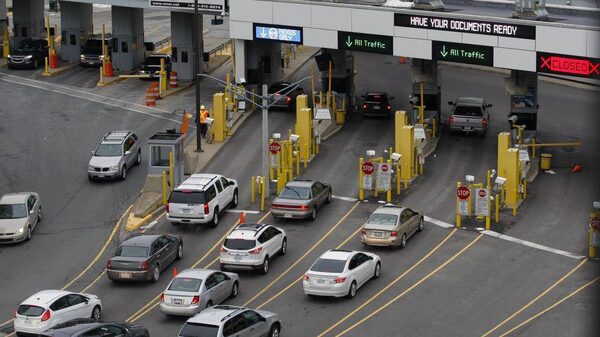 Vehicles stop at customs booths while entering the United States from the tunnel coming under the Detroit river from Windsor, Ontario in downtown Detroit, Michigan March 1, 2013.REBECCA COOK/Reuters