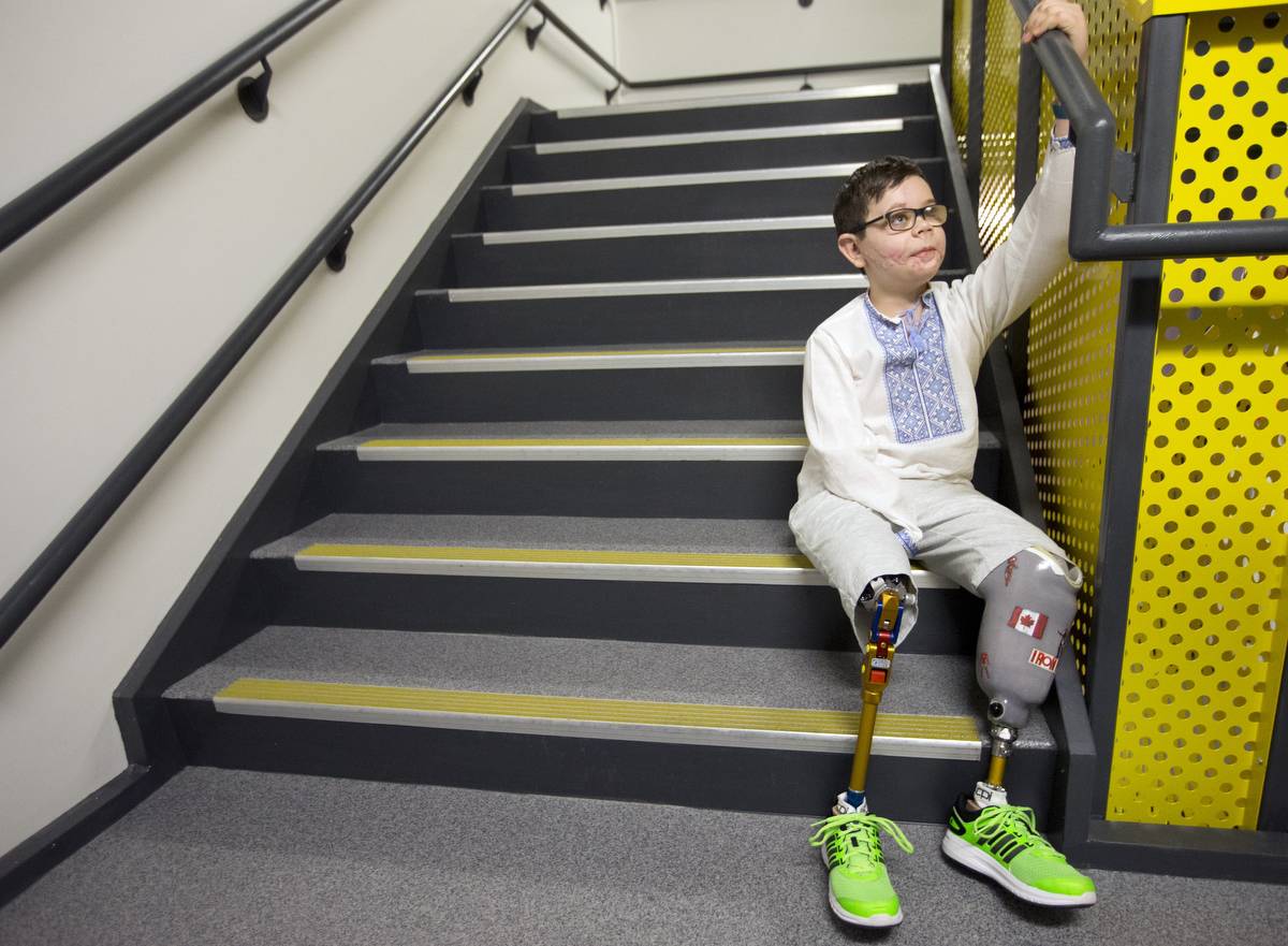 Mykola Nyzhnykoskyi had both legs and one arm blown off when he stepped on an errant grenade in his small village in the Ukraine. He was destined to be a triple amputee with few prospects until a group of Canadian doctors working on a medical mission in Ukraine heard about him. Now, the Shriners Hospital in Montreal is piecing the 12-year-old back together.