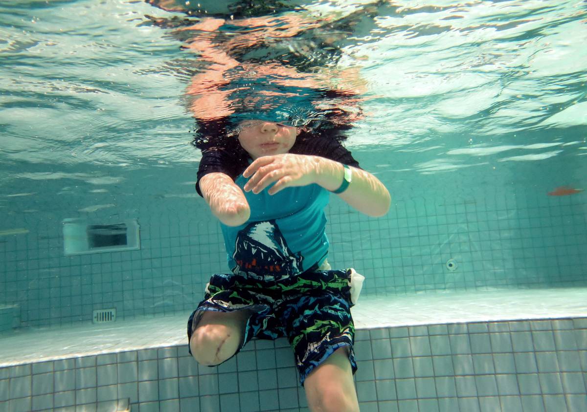 Mykola Nyzhnykovskyi undergoes therapy in the pool at the Shriner's hospital in Montreal. (Christinne Muschi for The Globe and Mail)