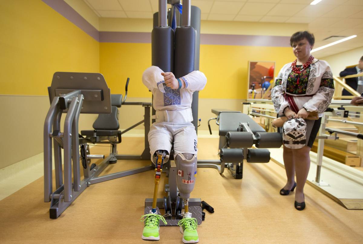 Mykola is being fitted for prosthetic legs for the first time at J. E. Hanger in Montreal. (Adriana Luhovy for The Globe and Mail)