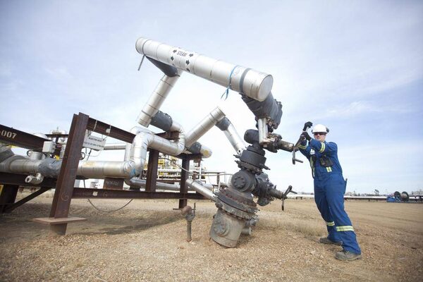 Nexen process operator Terry McCall tightens a valve on this well head while working at Nexen's Phase 1 Long Lake SAGD processing facility near Fort McMurray.Dave Olecko