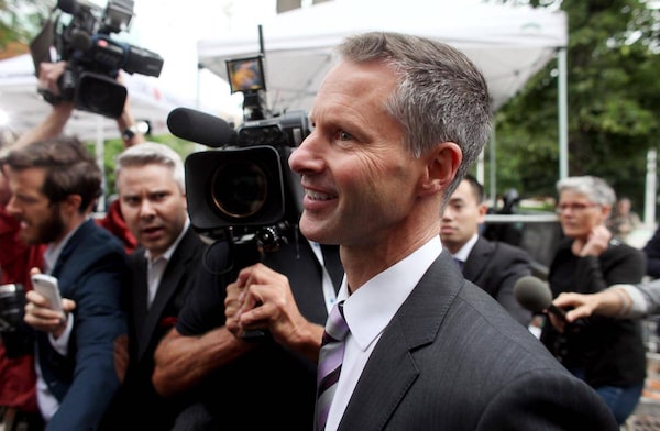 Nigel Wrght, former chief of staff to Prime Minister Stephen Harper, makes his way through a crush of media as he arrives to testify at the criminal trial of embattled senator Mike Duffy in Ottawa on Aug. 12, 2015Dave Chan/The Globe and Mail