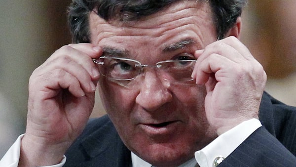 Canada's Finance Minister Jim Flaherty reacts during Question Period in the House of Commons on Parliament Hill in Ottawa February 14, 2011.CHRIS WATTIE