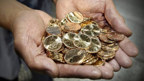 Erwin Perezdetagle, lead hand of coining at the Royal Canadian Mint in Winnipeg, inspects coins as they come off the press in this 2009 file photo.John Woods