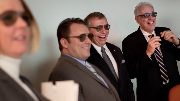 Rob Moore, Minister of State, Small Business and Tourism, second from left, Ted Menzies, Minister of State, Finance, and Ryerson University President Sheldon Levy try out a 3D demonstration after an announcement January 25, 2011 to officially designate 2011 Year of the Entrepreneur.Moe Doiron/The Globe and Mail