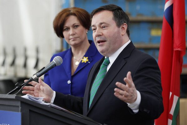 Jason Kenney, Minister of Employment and Social Development, responds to media questions as Theresa Oswald, Manitoba Minister of Jobs and the Economy listens in during a Canada Job Grant press conference in Winnipeg, Wednesday, April 23, 2014.John Woods/The Canadian Press