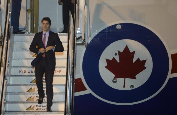 Prime Minister Justin Trudeau disembarks from his plane upon his arrival at the airport to attend the Asia-Pacific Economic Co-operation (APEC) Summit in Manila on Nov. 17, 2015.NOEL CELIS/AFP / Getty Images