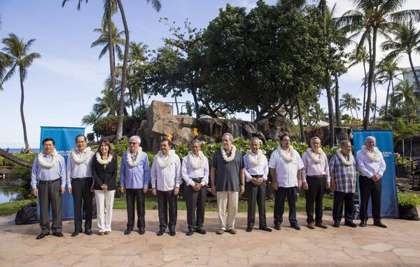 Trade ministers from 12 countries line up for a family photo during Trans-Pacific Partnership talks on Thursday in Maui, Hawaii.MARCO GARCIA/Reuters
