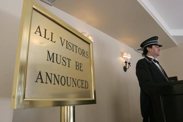 Doorman stands at the ready inside the building where he works on New York's Upper East Side.TINA FINEBERG/The Associated Press