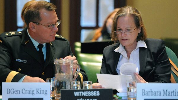 Brig.-Gen. Craig King, director general, left, and Barbara Martin, Director General Middle East, appear at Commons defence committee hearing witnesses on the situation in Libya on Parliament Hill in Ottawa on Thursday, October 27, 2011.THE CANADIAN PRESS/Sean Kilpatrick