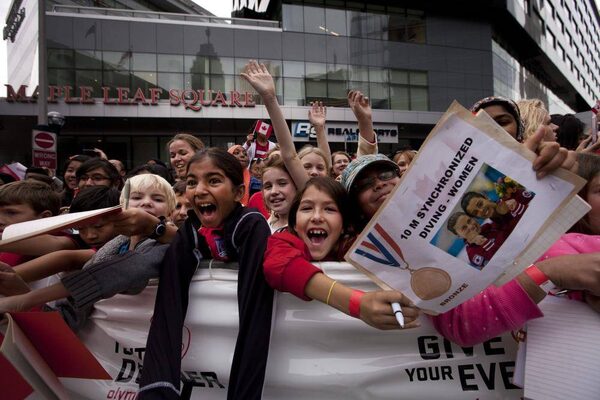 Crowds cheer at Maple Leafs Square in Toronto during a parade celebrating Canada's Olympic athletes.Moe Doiron/The Globe and Mail