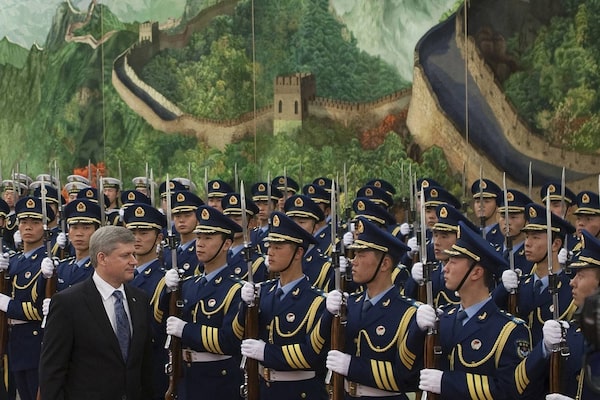 Prime Minister Stephen Harper inspects the honour guard with Wen Jiabao, Premier of the Peolpe's Republic of China, in the Great Hall of the People in Beijing, China on Thursday, December 3, 2009.Sean Kilpatrick