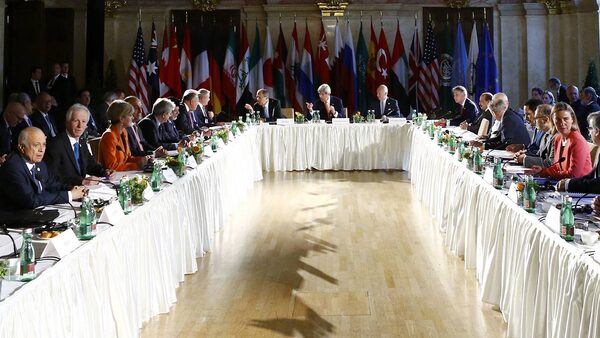 Russian Foreign Minister Sergei Lavrov, center left, U.S. Secretary of State John Kerry, center and United Nations special envoy for Syria Staffan de Mistura, center right, attend the ministerial meeting on Syria in Vienna, Austria.Leonhard Foeger/The Associated Press