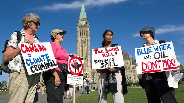The Council of Canadians and Greenpeace Canada protest against Alberta oil-sands development on Parliament Hill in September of 2011.Sean Kilpatrick
