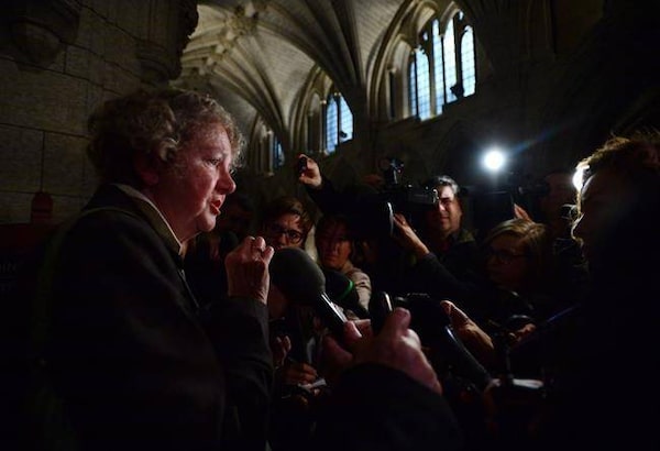 Ethics Commissioner Mary Dawson speaks to reporters after appearing as a witness at a commons committee on Parliament Hill, in Ottawa on Tuesday, October 17, 2017.Sean Kilpatrick/The Canadian Press