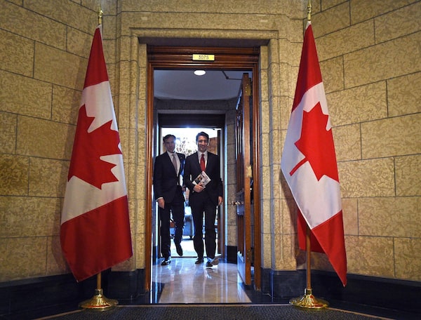 Finance Minister Bill Morneau and Prime Minister Justin Trudeau leave the prime minister's office holding copies of the federal budget in Ottawa, Wednesday, March 22, 2017.Sean Kilpatrick/The Canadian Press