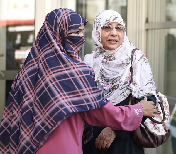 Zunera Ishaq (left) embraces her friend Nusrat Wahid after the Federal Court of Appeal overturned a ban on the wearing niqabs at citizenship ceremonies, in Ottawa on Tuesday, Sept. 15, 2015.Justin Tang/The Canadian Press