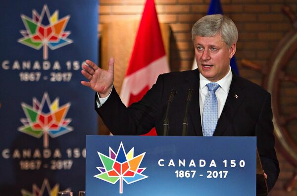 Prime Minister Stephen Harper makes a funding announcement for Canada's 150th anniversary celebrations, in Quebec City, Thursday, June 25, 2015.Clement Allard/The Canadian Press