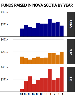 While it is still a tiny share of overall federal political financing, donations coming from the Atlantic provinces have more than tripled over past decade, from $650,000 in 2004 to more than $2.2-million last year. The largest share has gone to the Liberals, who raised $1.1-million in the region last year, compared with $700,000 for the Conservatives and $440,000 for the NDP.