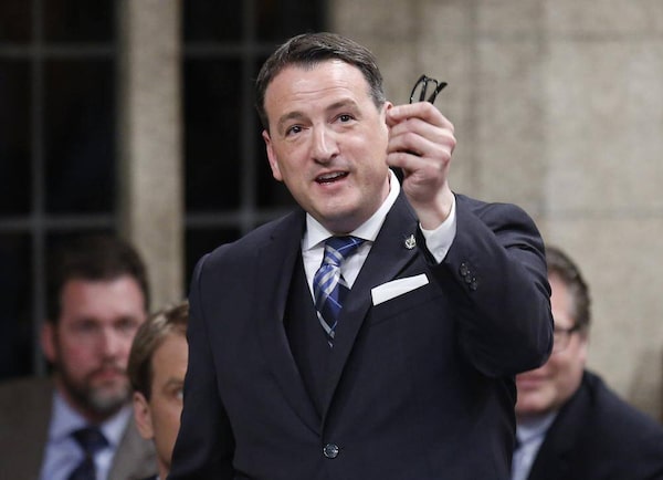 Canada's Natural Resources Minister Greg Rickford speaks during Question Period in the House of Commons on Parliament Hill in Ottawa March 31, 2014.CHRIS WATTIE/Reuters