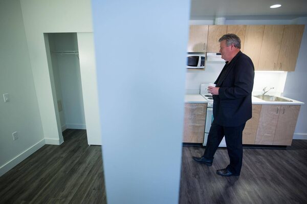 Rich Coleman, who is responsible for housing, looks at a unit at 250 Powell, the former remand centre that has been converted into affordable housing, during a media tour in Vancouver, B.C., on Aug. 5, 2015. Mr. Coleman called 2015 “a busy and fulfilling year” to help more people find a safe and affordable place to call home.DARRYL DYCK/The Globe and Mail
