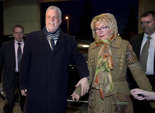 Quebec Liberal Leader Philippe Couillard and his wife Suzanne Pilote walk into the campaign headquarters for election returns Monday, April 7, 2014 in St-Felicien Que.Jacques Boissinot/The Canadian Press