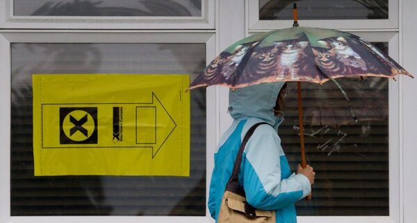 A woman carries an umbrella as she enters a polling station to vote in the federal election in Sidney, B.C., on May 2, 2011.DARRYL DYCK/The Canadian Press