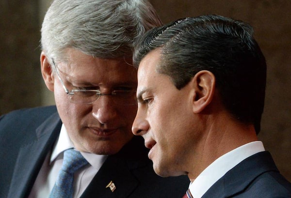 Prime Minister Stephen Harper takes part in a joint press conference with Mexican President Enrique Pena Nieto at the National Palace in Mexico City on Feb. 18, 2014.SEAN KILPATRICK/The Canadian Press