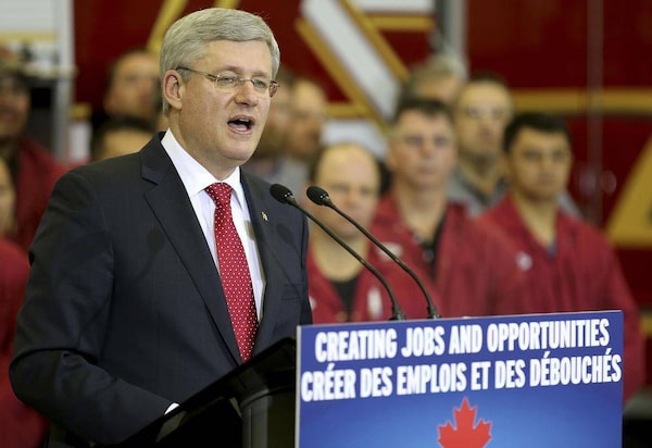 Prime Minister Stephen Harper speaks at Fort Garry Fire Trucks Winnipeg on Nov. 22, 2013. The Conservative Party is facing a difficult by-election in the riding of Brandon-Souris, which has normally been a Tory stronghold.TREVOR HAGAN/Reuters